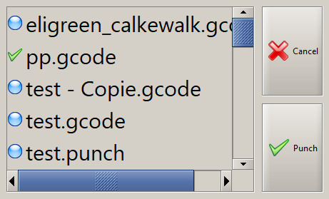 Mettre sur une clef USB contenant les fichier à perforer. Deux types de fichiers sont acceptés : les fichier .gcode ou .punch