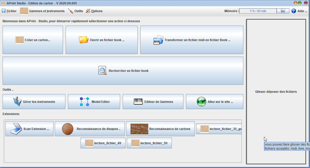 Ouvrir APrint et importer un instrument