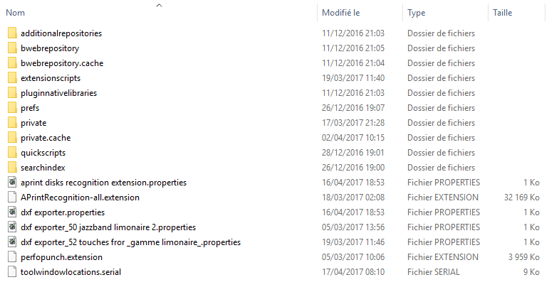 Ces fichiers contiennent des extentions logicielles apportant de nouvelles fonctionnalités, ces fichiers sont disposés dans le répertoire aprintstudio et sont automatiquement chargés lors du démarrage d'APrint.