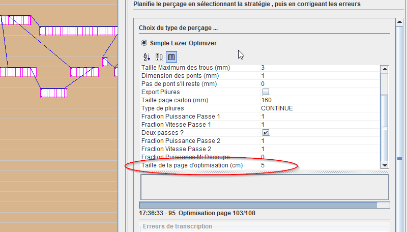 L'optimisation du trajet du laser est effectué par PAGE pour l'optimisation est défini par le paramètre. Taille de la page d'optimisation. (en CM), dans la limite des 1000 objets à optimiser.