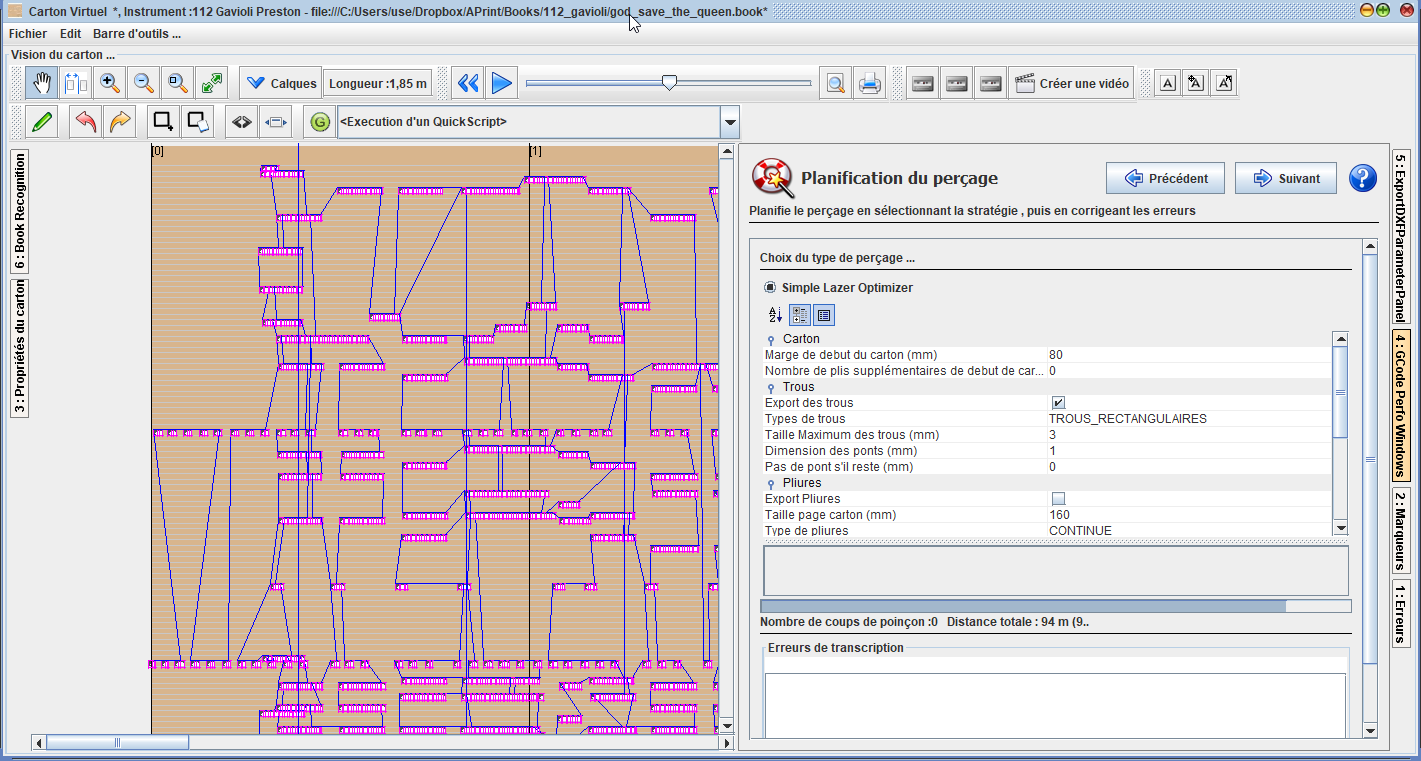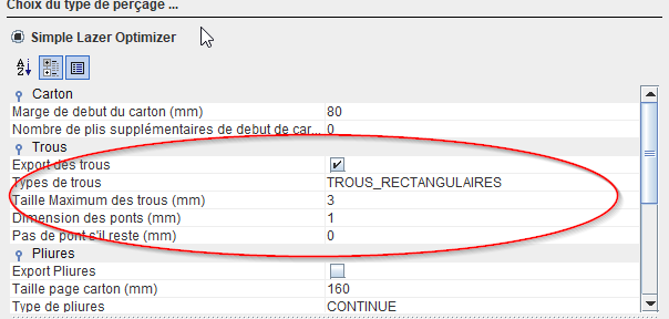 Le choix de l'export des trous, permet de préparer une découpe uniquement avec les pliures. Il a été constaté que la réalisation des pliures, sans allers et retours améliorait la régularité des pages de cartons et donc l'apparence du carton une fois pliée (les cartons ne font pas l'accordéon une fois pliés).