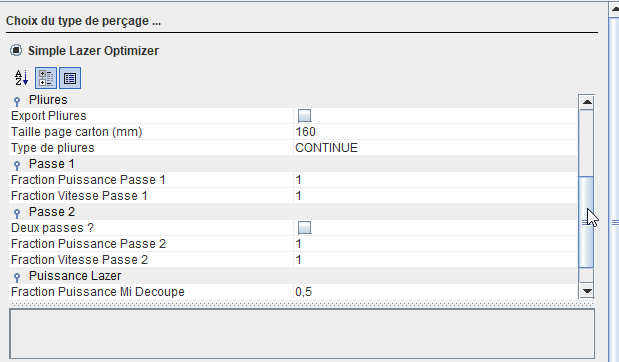 Nous retrouvons dans la fenêtre de paramétrage, les préférences de découpe et d'optimisation.