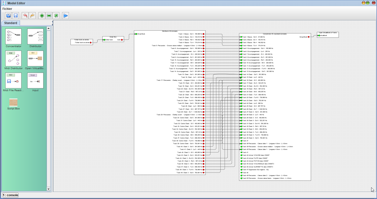 Le modèle editor est un outil de programmation visuel, permettant d'effectuer des transformations sur des cartons, des fichiers midi, ou automatiser certaines actions.