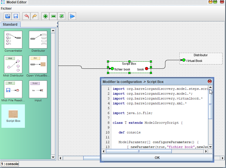 Situé dans la palette, un glissé / déposé, permet l'ajout du script dans le modèle. Un double click permet de définir le script associé.