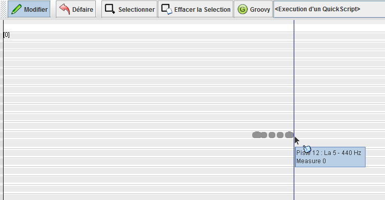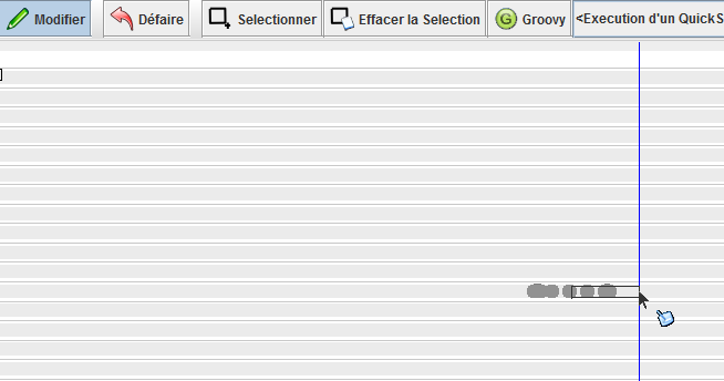 Lors des opération de modification de trous, il est possible de s'aligner sur les trous environnant. Lorsque la touche "Majuscule" est appuyée, le curseur se magnétise et se cale sur le début des trous situés sur les même timing.