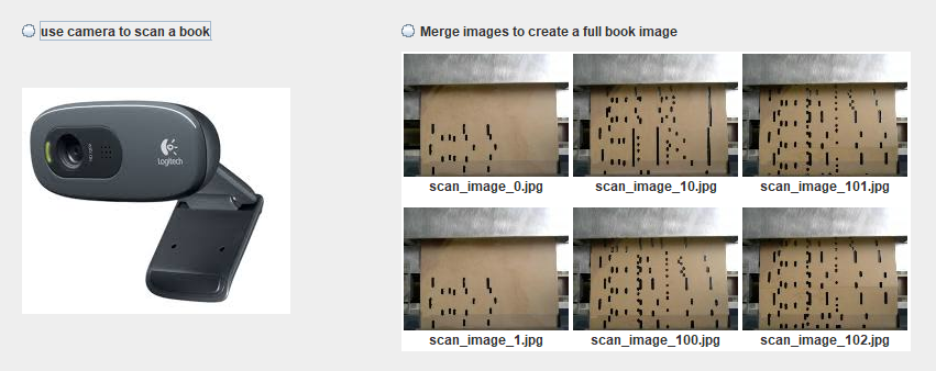 L'utilisation d'une web cam prenant des clichés régulier du carton, pour la numérisation, est possible. En prenant une série d'images à intervalles régulier, il est possible de créer un ensemble d'image pouvant être reconstruits.