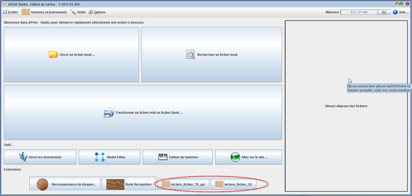 Lors du démarrage du logicel, le répertoire est scanné pour en extraire la liste des scripts ".aprintgroovyscript", et ajouté sous forme de bouton dans l'interface.