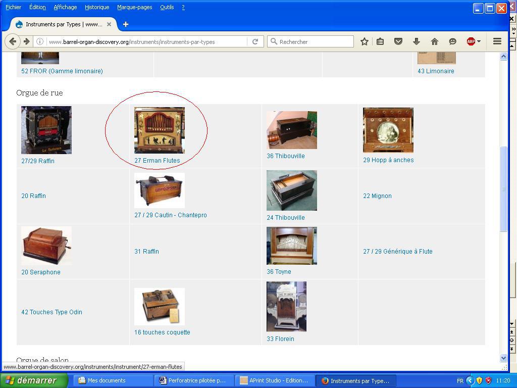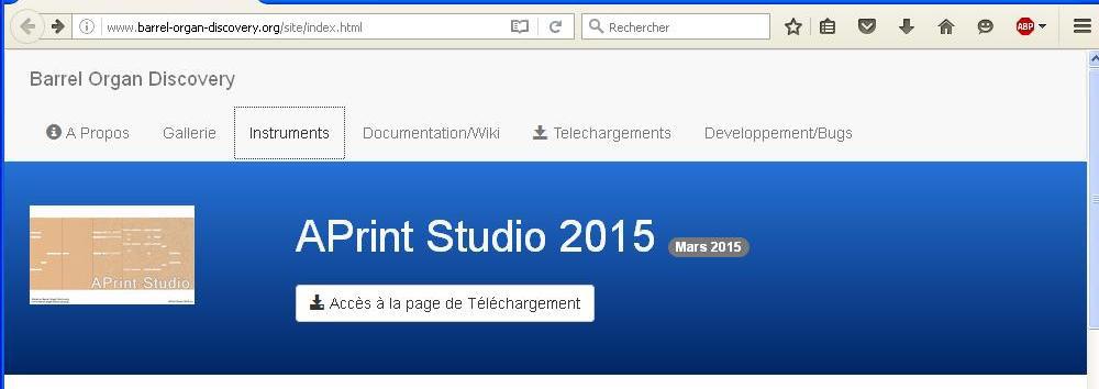 Avant toute chose, il faudra importer l’instrument pour lequel vous voulez perforer le carton. Vous aurez ainsi tous les paramètres (nombres de touches, pas, mesure depuis le bord de référence…) Je vais prendre l’exemple d’un 27 touches pneumatique. A l’ouverture de APrint, cliquer sur le bouton « Aller sur le site »