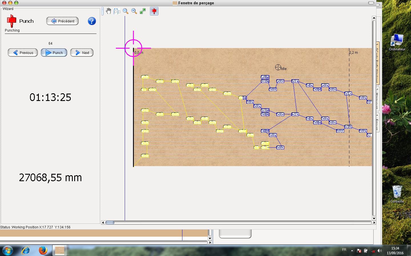 La dernière fenêtre vous invitera à cliquer sur «punch (perforation)» Les trous perforés s’affichent en jaune. On peut ainsi voir le chemin parcouru.