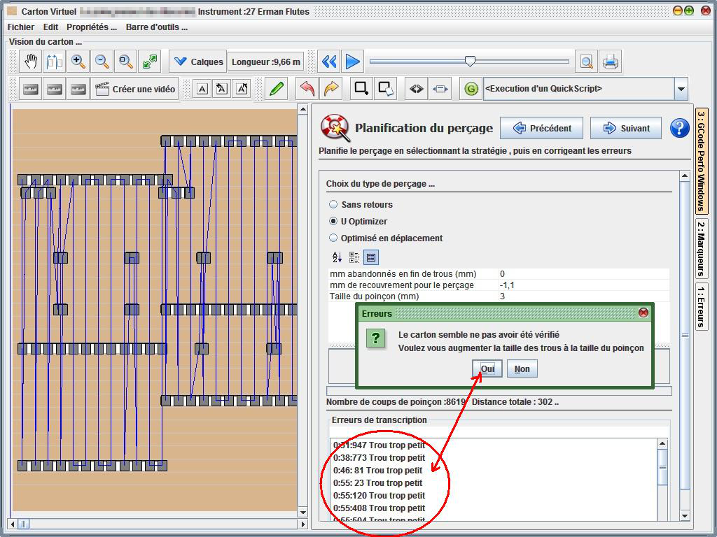 Une vérification est néanmoins proposée dans le logiciel. Il vous proposera d'agrandir les trous trop petits à la taille du poiçon.