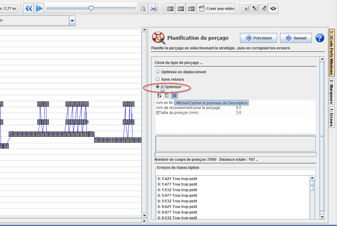 La version 2017 propose une nouvelle méthode d'optimisation, spécialement dédiée au perforation papier. Cette optimisation permet d'éviter un balayement complet de la tête de perforation, en perforant en remontant ou en redescendant.