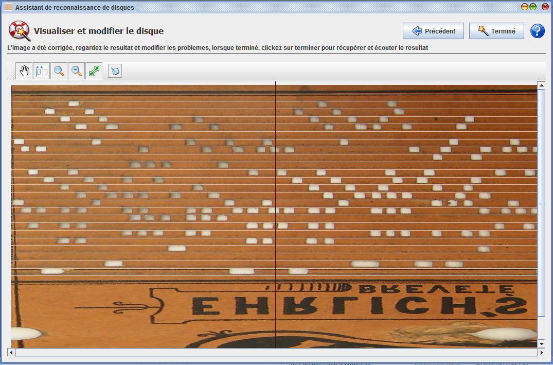 Cette étape permet aau logiciel de localiser le centre du disque. La bonne connaissance du centre du disque permet de redresser ou corriger les déformations du carton, ou de la prise de vue.