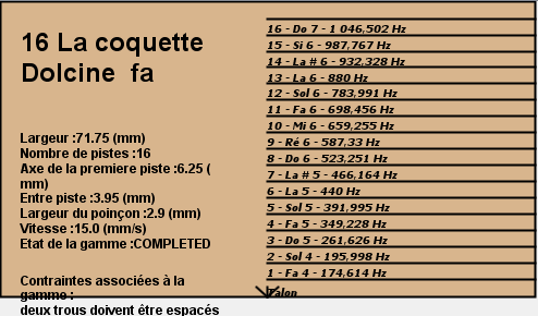 Le premier élément de la modelisation d'un instrument, débute par la définition d'une gamme. la gamme définie la commande de lecture d'un instrument. Cette définition de gamme permet alors la création des cartes perforées.
