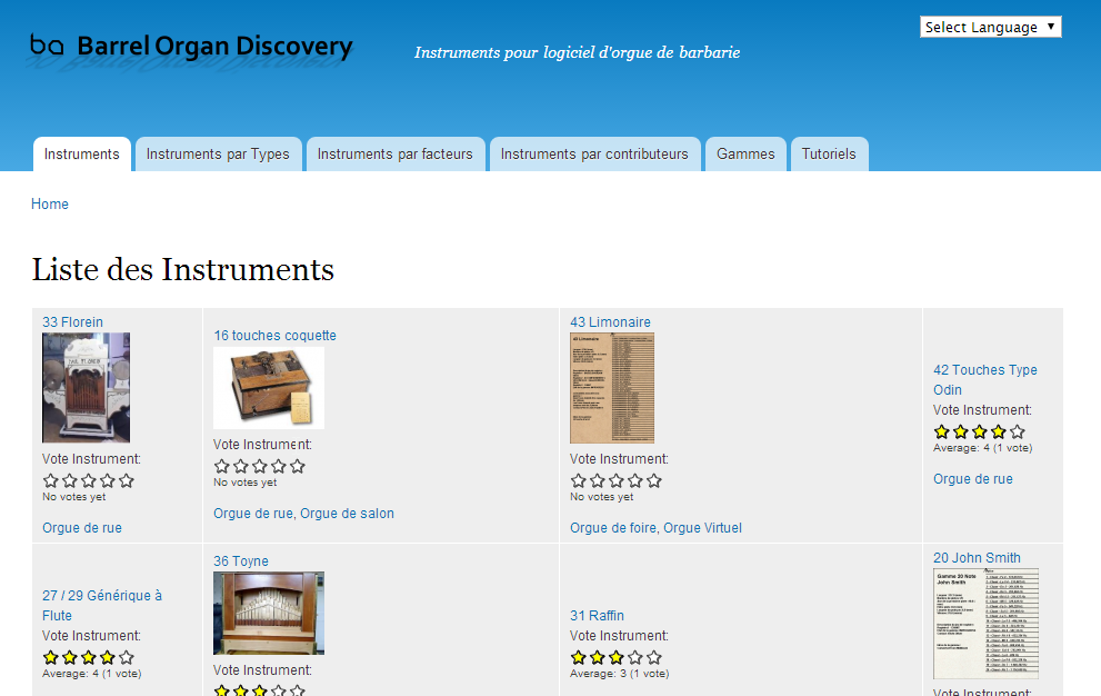 à ce jour, 23 instruments sont proposés sur le site web, en téléchargement libre.