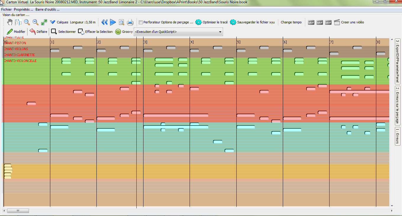 Le resultat de l'adaptation d'un fichier midi en carton, peut être sauvegardé dans un fichier TEXTE (au format XML), suffixé de l'extension .book.